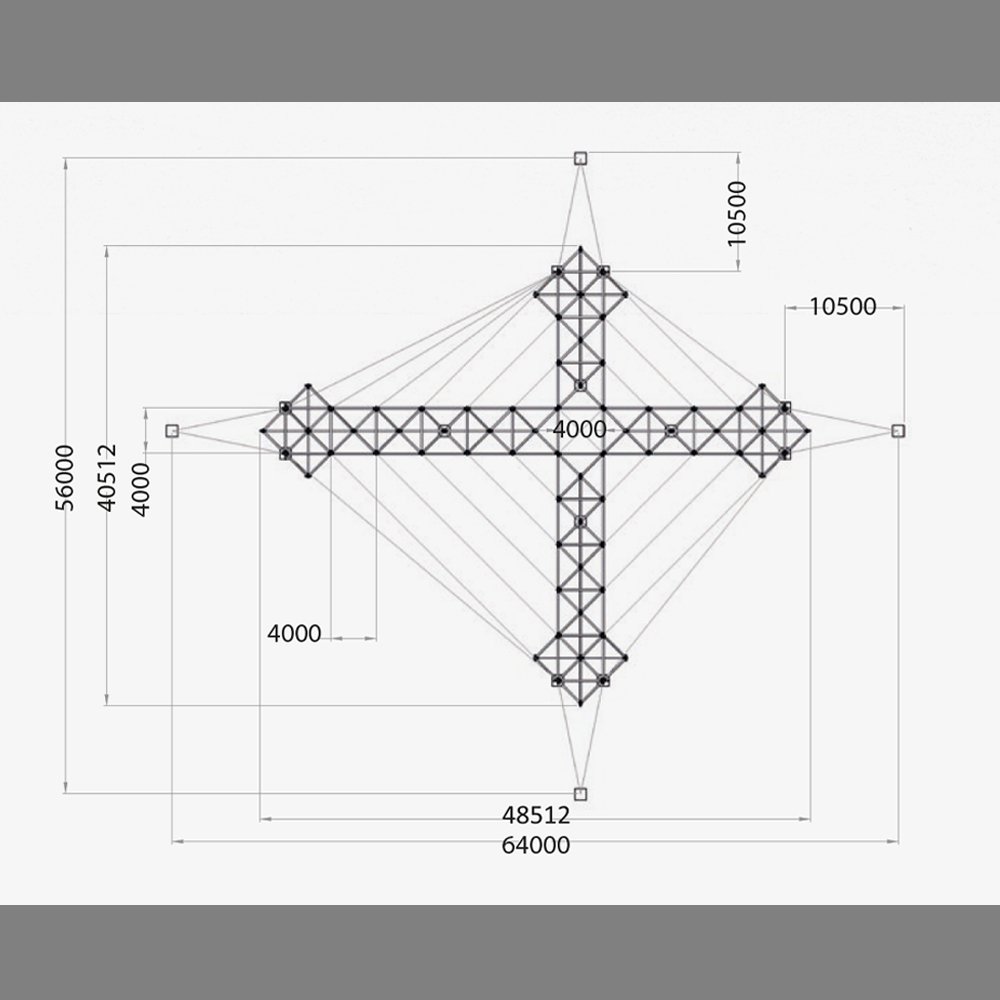 De Crowd Roof is een constructie van stalen en houten palen in de vorm van een enorme driehoekstruss. Interesse?