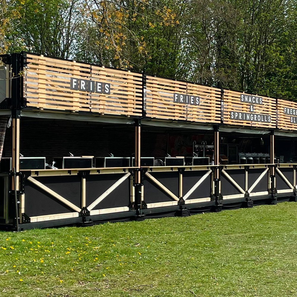 Ideaal als bar, FOH, merchandise en verkoop- of infopunt. De Kube is koppelbaar, zowel in de breedte als in de diepte. Vloeroppervlak binnenin is 400x400cm.