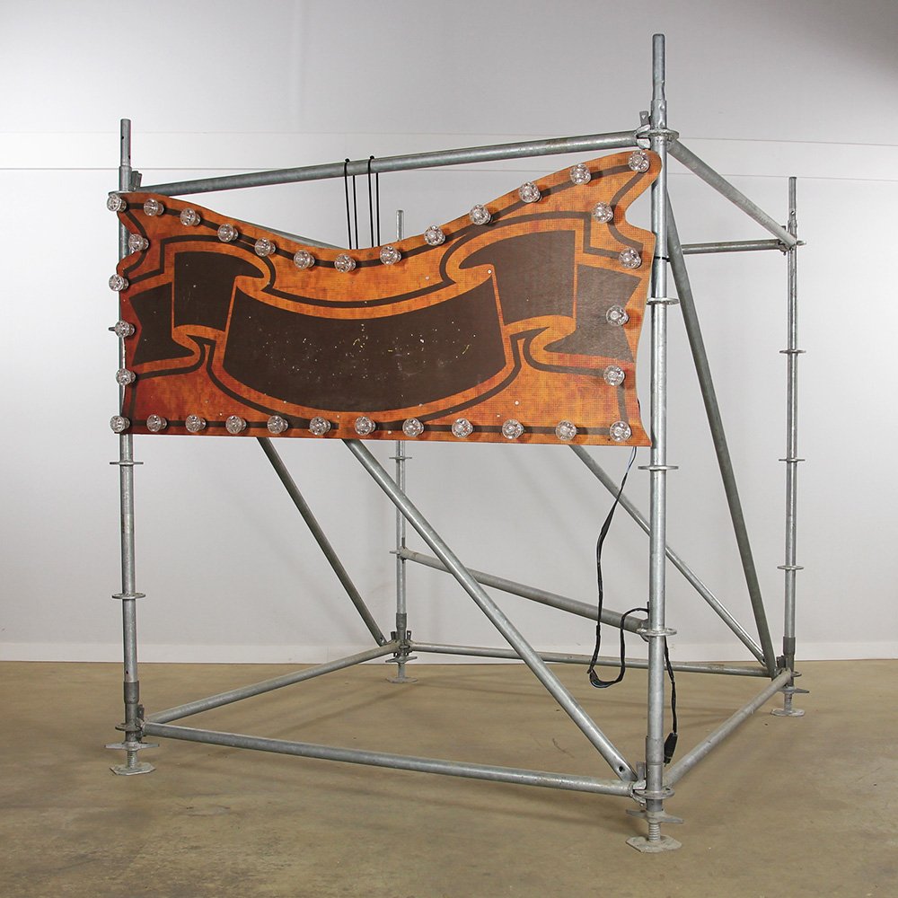 Uithang lichtbord in klassieke Vaudeville Theaterstijl met kermislampen (LED). Authentieke uitstraling. Eenvoudig op te hangen met safetysteels, dan wel met scaffklammen.