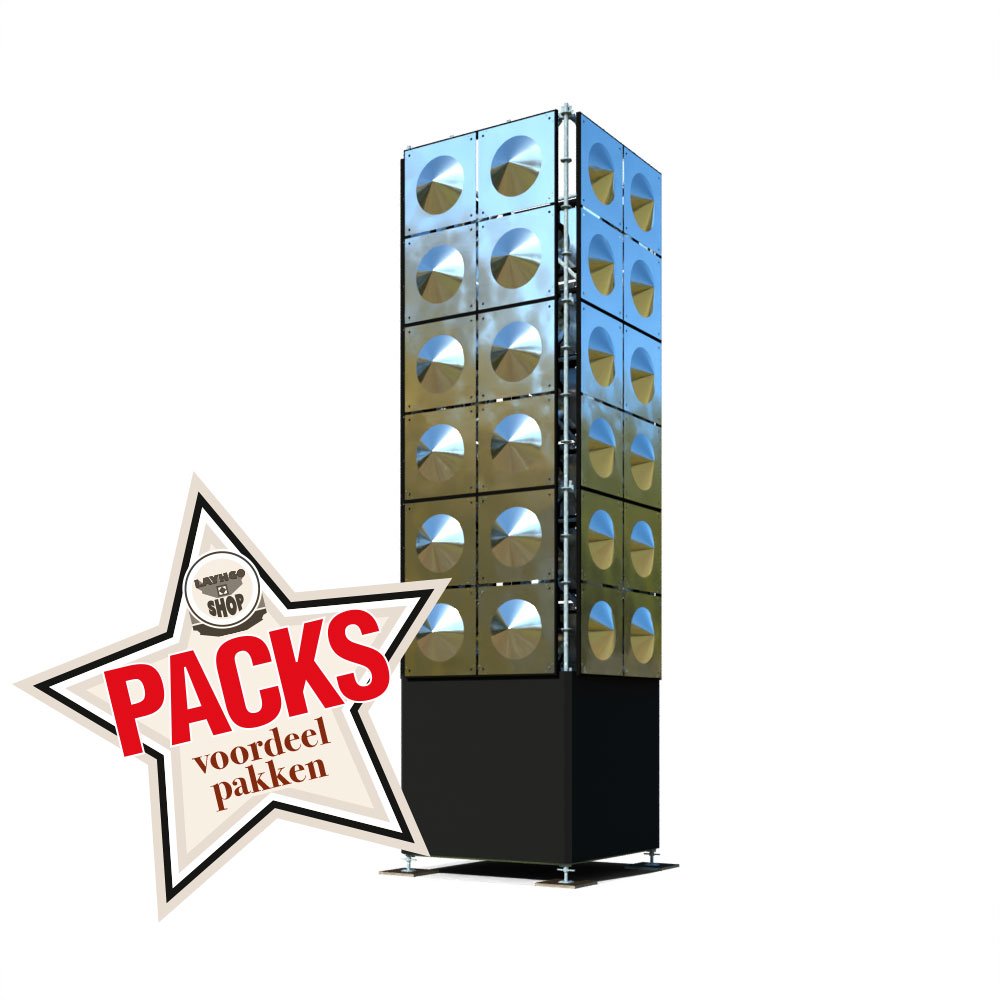 De 96-Series G-Spot is een aluminium gevormde decorplaat met een afmeting van 96x96cm. Met een 12-Pack pak je 3 steigervakken van 200x200cm in. We kunnen ze per 4 prefab monteren op onze Layhgo Bracket Frames dan zijn ze eenvoudig, snel en veilig in te hangen. De Layhgo Bracket Frames zijn geheel kant en klaar voorzien van ophangklemmen.