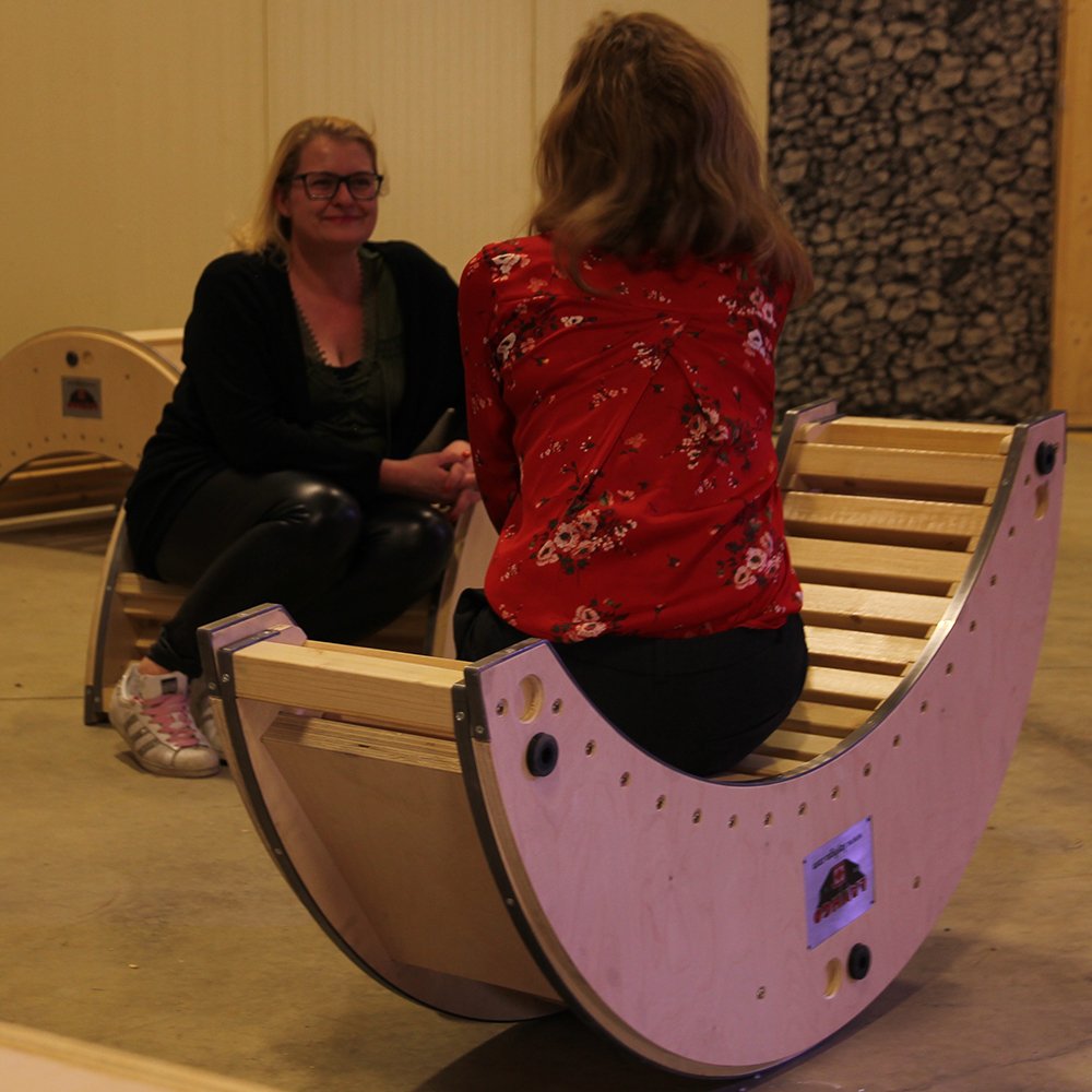 Houten schommelstoel/picknicktafel.