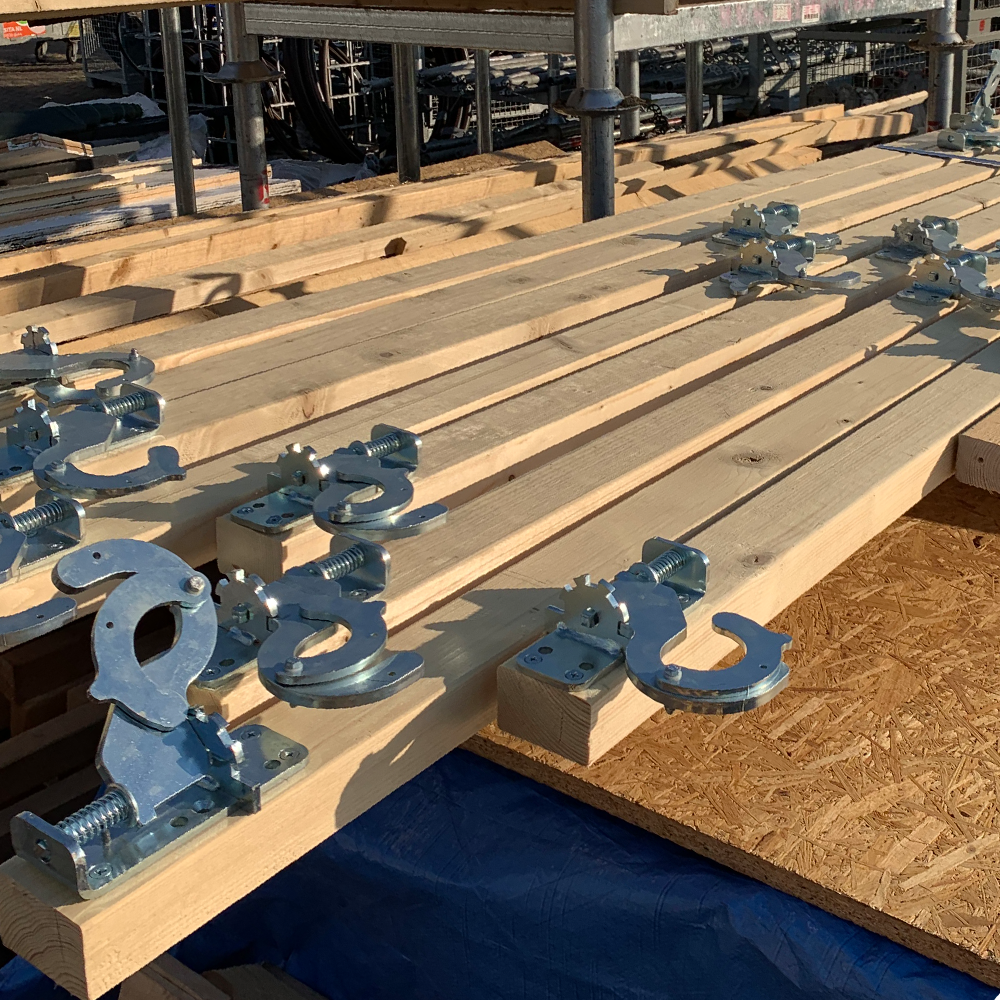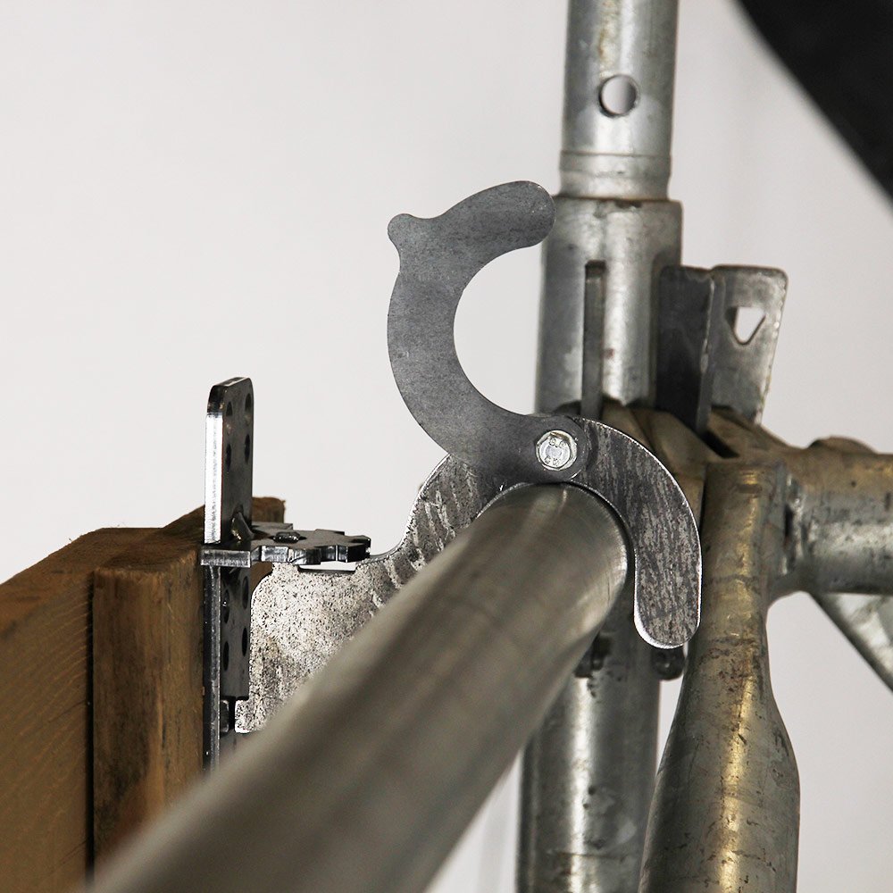 Uniek ophangsysteem om snel en veilig panelen in het steigerconstructies en trussen te hangen.